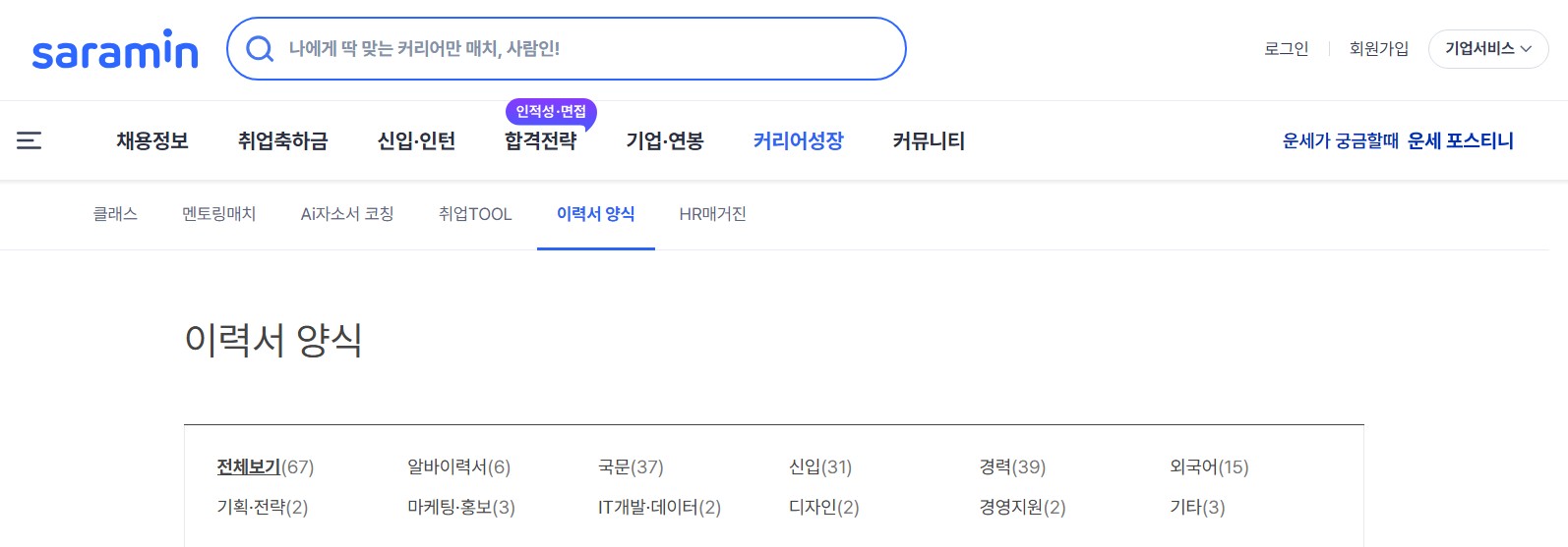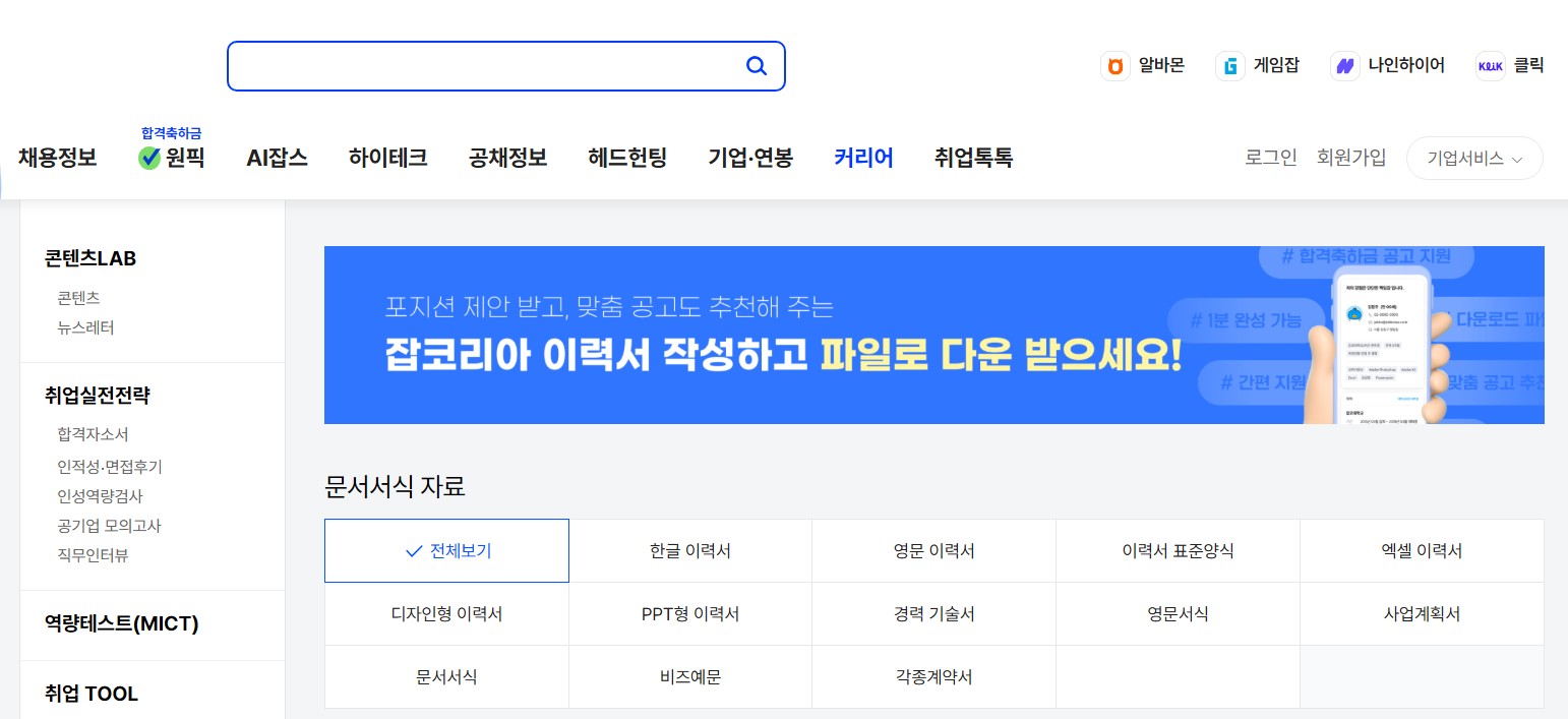 - 특징: 다양한 직무별 이력서 양식 제공