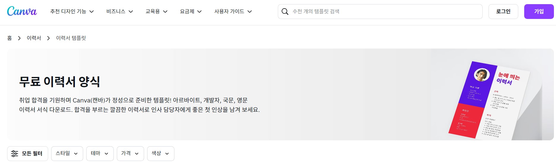 - 특징: 세련된 디자인의 이력서 템플릿 제공