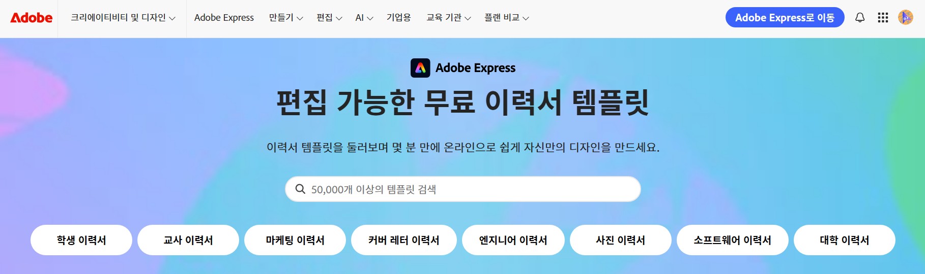 - 바로가기: Adobe Express 이력서 템플릿