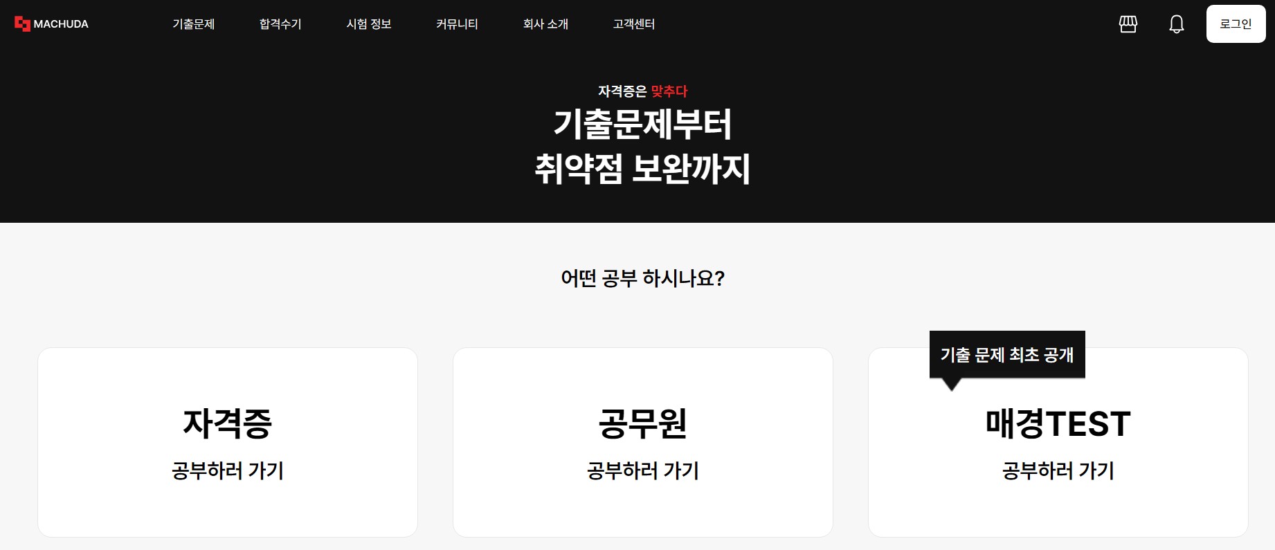 맞추다에서 새로운 CBT 전자문제집을 만나보세요! 개인맞춤 국가 자격증 교육서비스. 큐넷 합격 전략, 기능사, 산업기사, 기사 자격증 정보까지.
