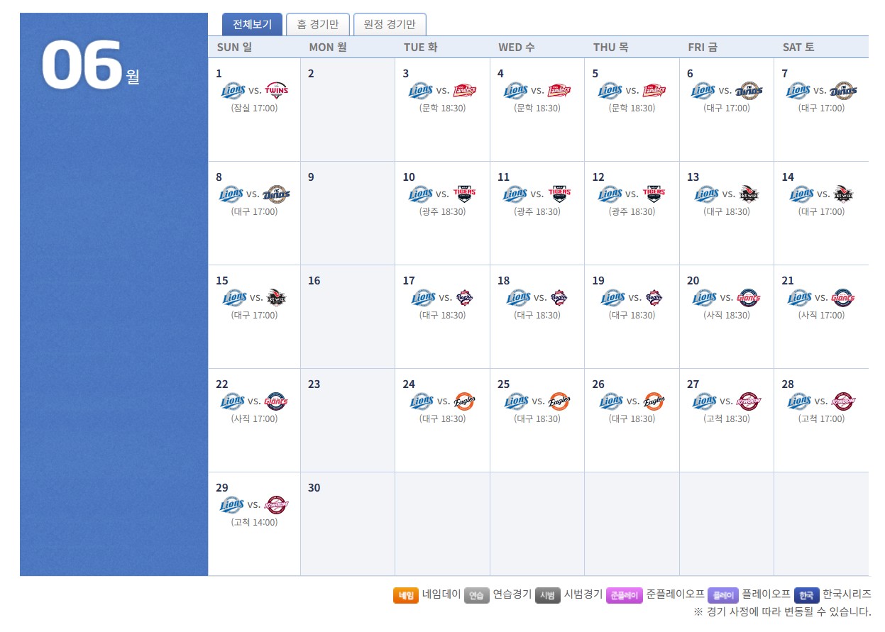 ⚾ 삼성 라이온즈 6월 주요 경기 일정