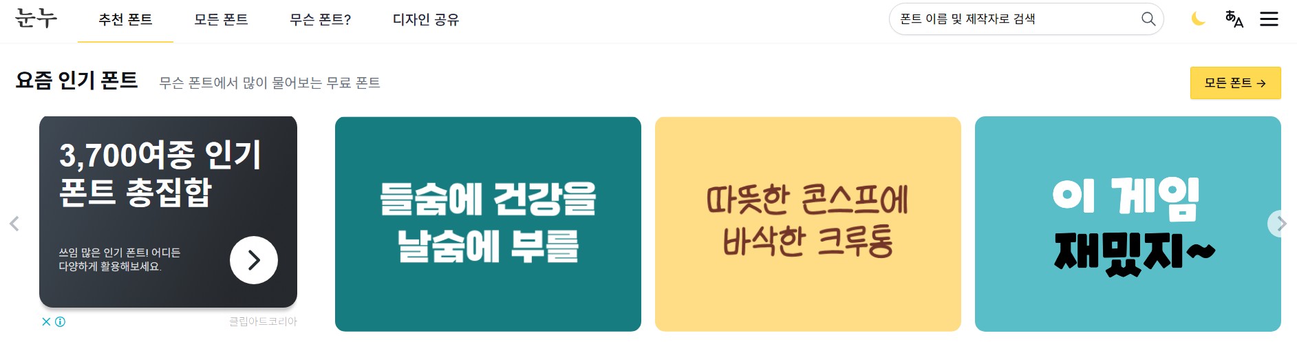 - '무료 폰트' 카테고리 따로 제공