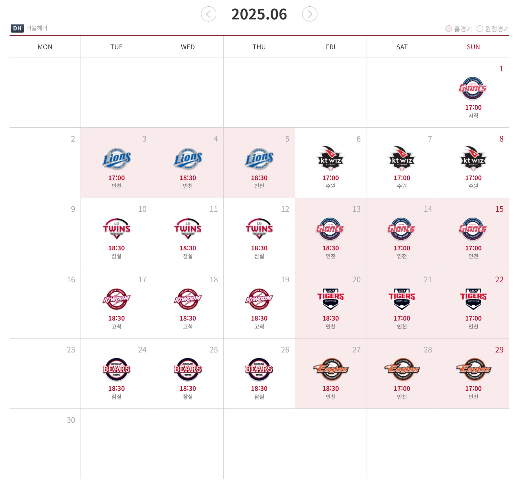 6월 경기일정